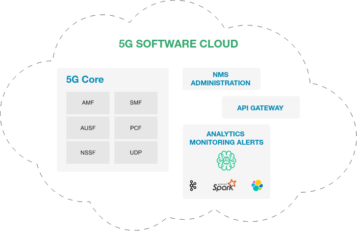 Cloud 5G software platform enables a seamless overlay of 5G Core deployment on your existing or greenfield enterprise IT network to meet the ultra-fast, low-latency connectivity needs while providing complete visibility, security and management of your network.